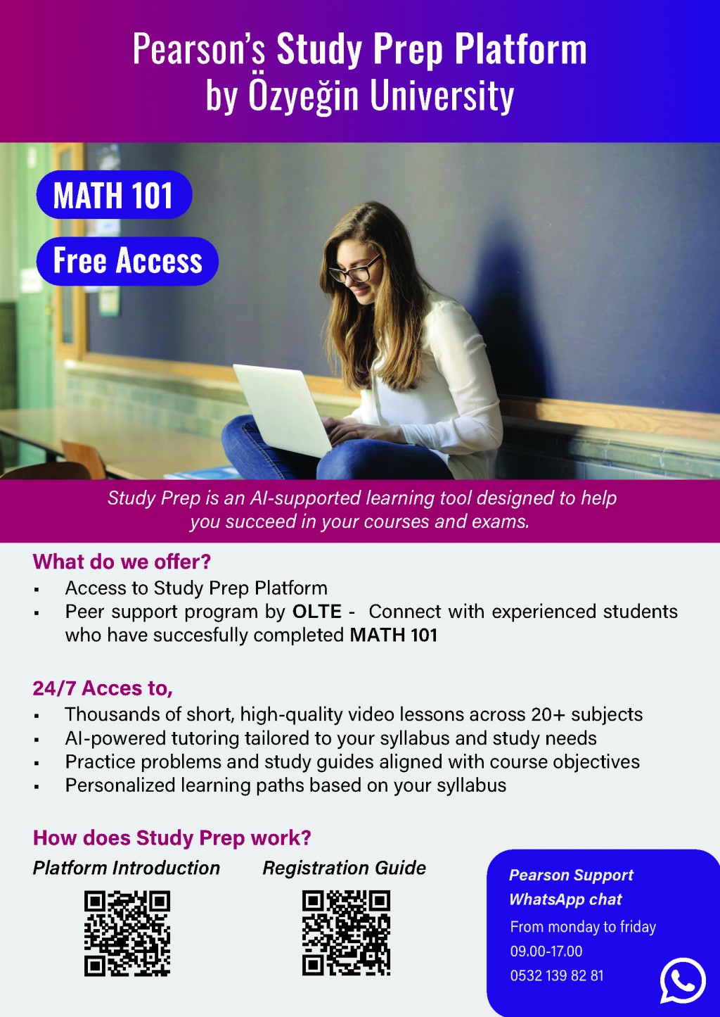Özyeğin Üniversitesi, derslerde konuları daha iyi kavramanı ve akademik başarını artırmanı desteklemek amacıyla, yapay zeka destekli kişiselleştirilmiş bir öğrenme aracı olan Pearson Study Prep platformuna ücretsiz erişim imkanı sunmaktadır.